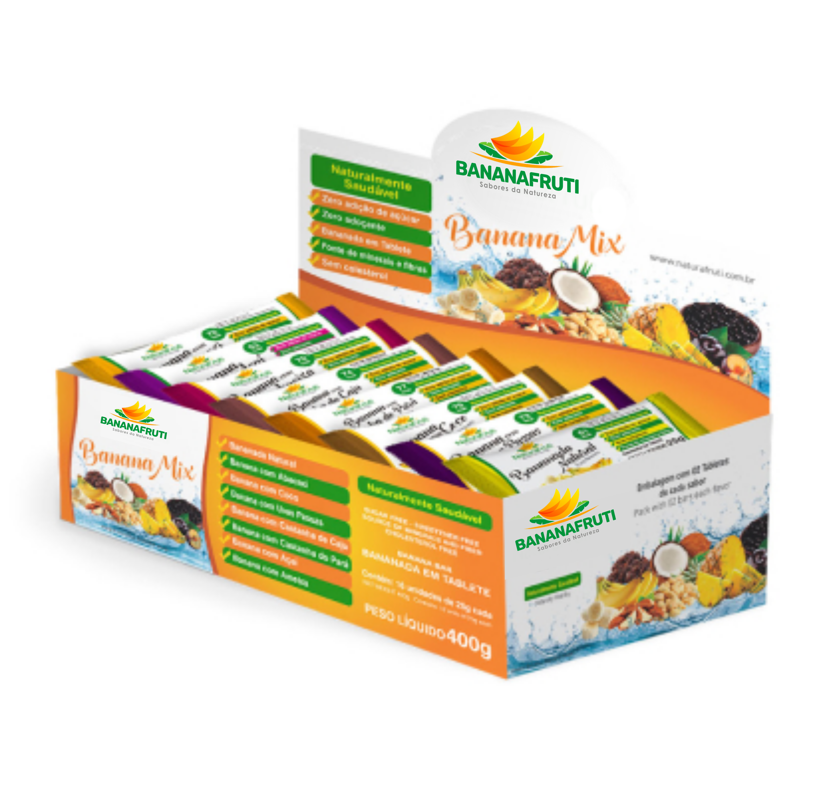 ao exigente consumidor. Os produtos oferecidos pela Bananafruti são barra de banana natural e barras